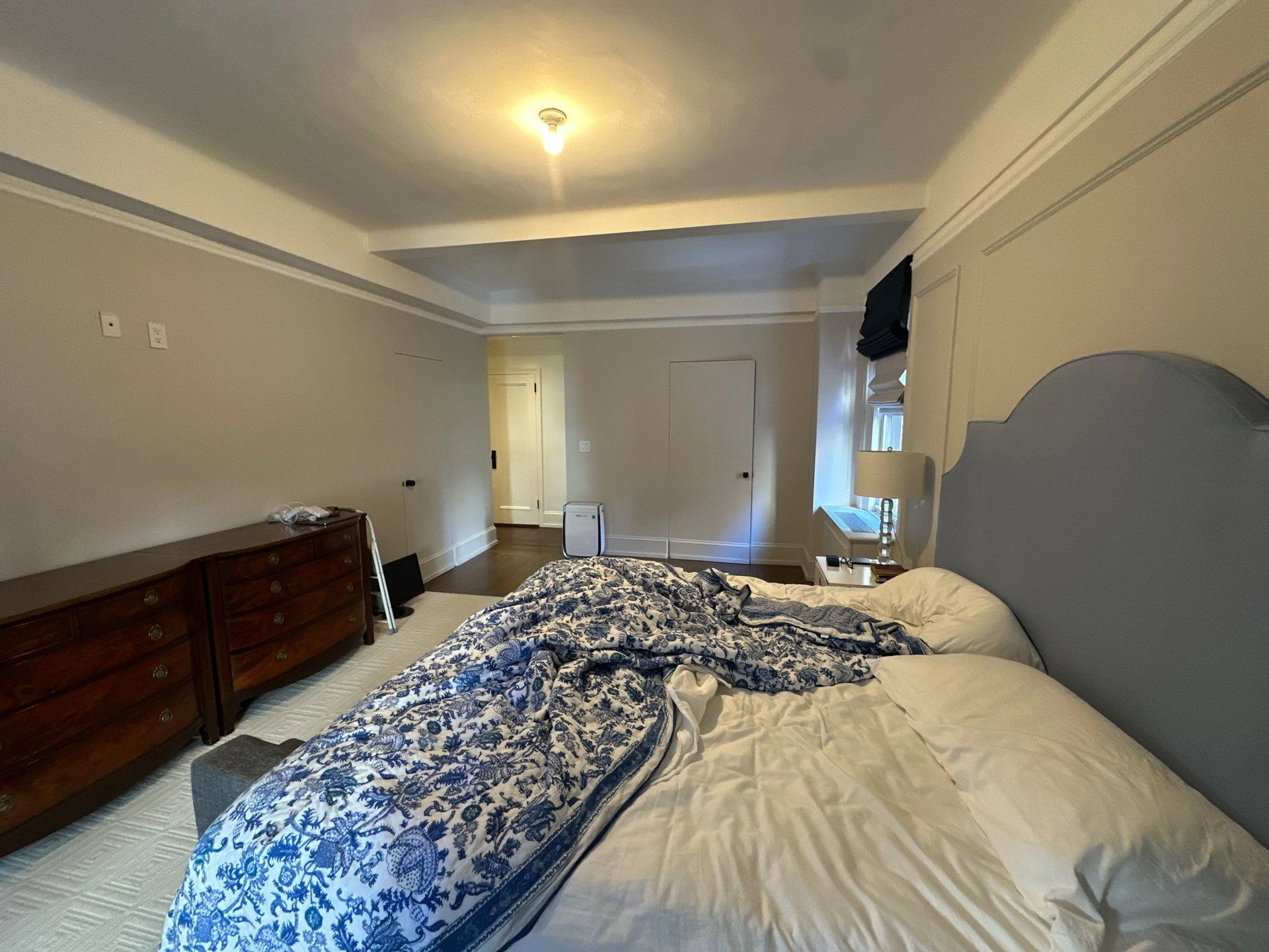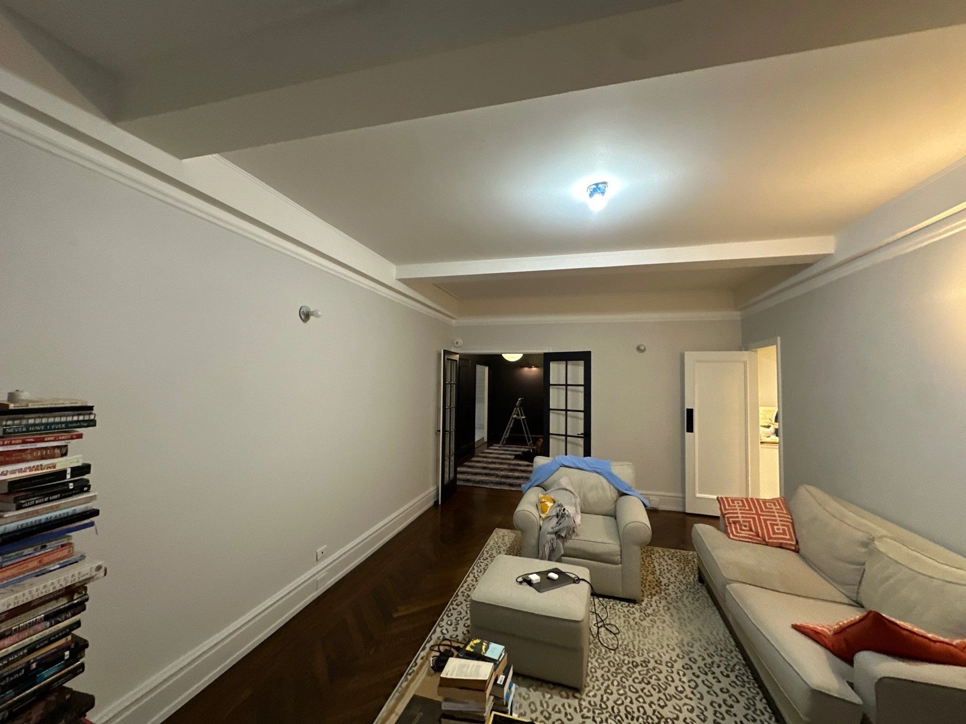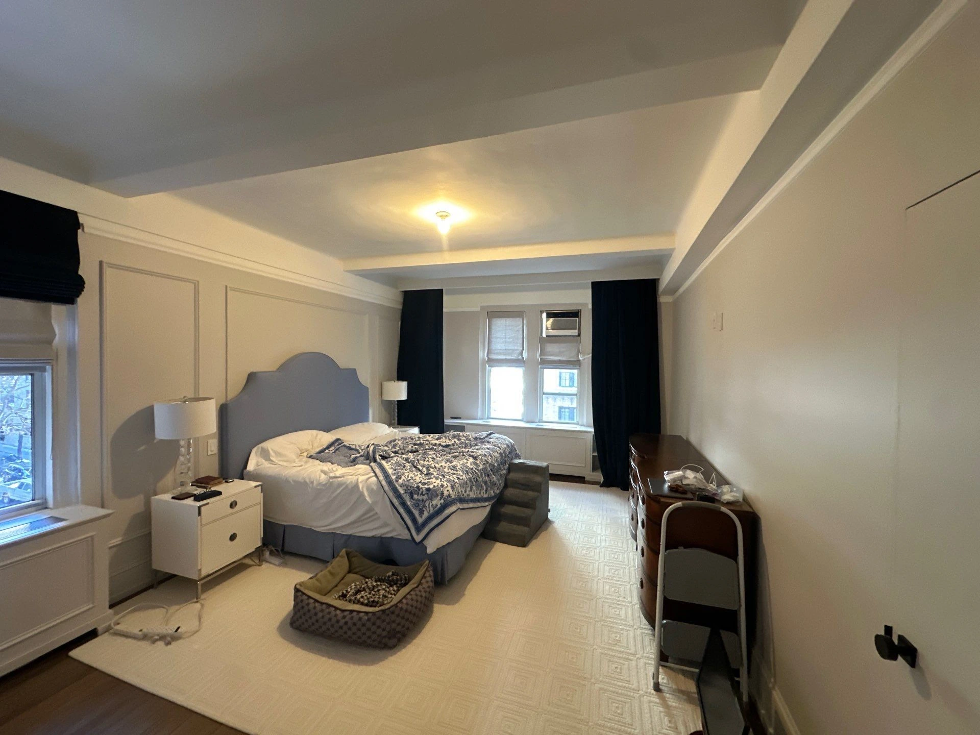 It worked! Park Avenue is now a very prestigious address, and it is here that we repainted an entire luxury residence, except the kitchen. The main living room took on new coats of Benjamin Moore’s Simply White paint, that kind of can’t-go-wrong-with-this color. In the primary bedroom, we painted Farrow & Ball’s Ammonite, a subtle gray with a hushed, calm feel.