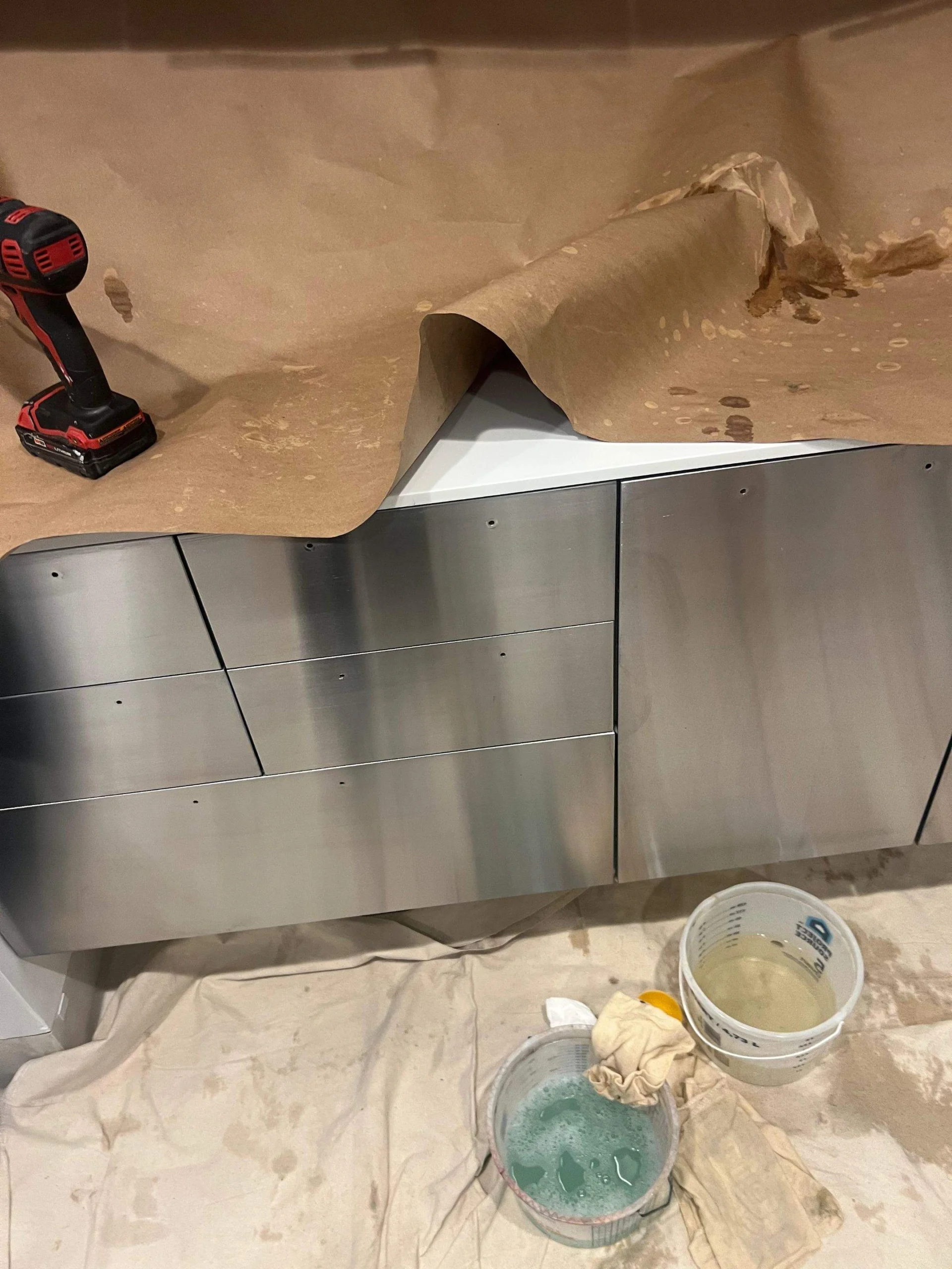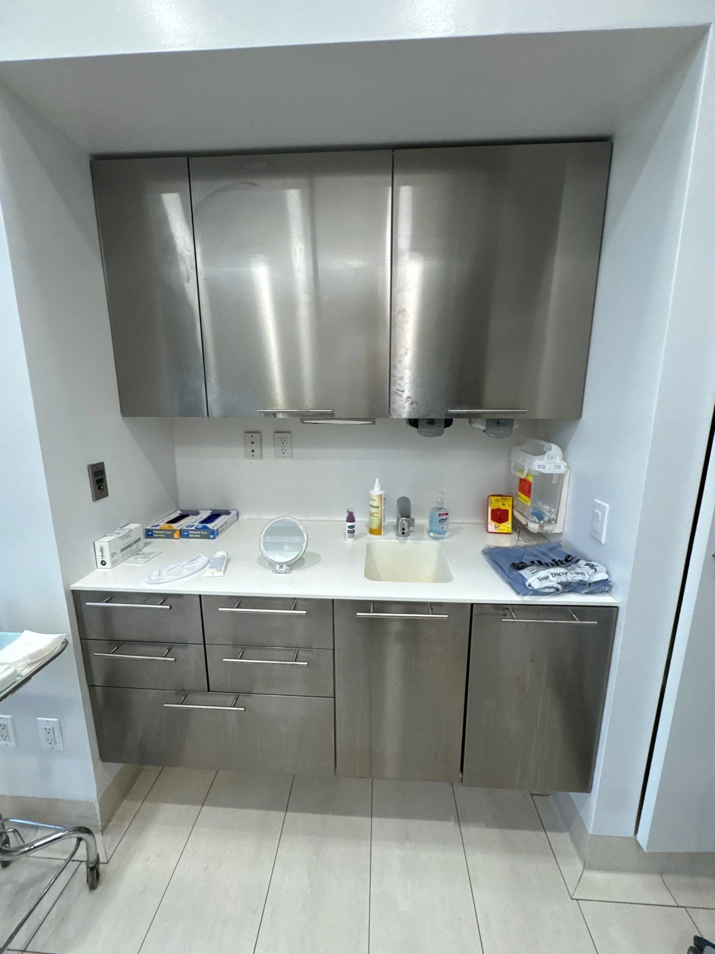 Stainless steel is revered for its non-porous quality, and here we removed handles from drawers, expertly cleaned doors and drawer fronts and reinstalled hardware in 11 exam rooms. Then our professional team polished the stainless steel, restoring the sheen and finished the project with a spray product. Super clean, shiny, polished metal cabinets inspire confidence and assurance for both patients and the medical staff. After a check-up here, you can wander across the street to Javelina for some Tex-Mex vittles, ABC Kitchen or any of the delectable food court stalls in the park.